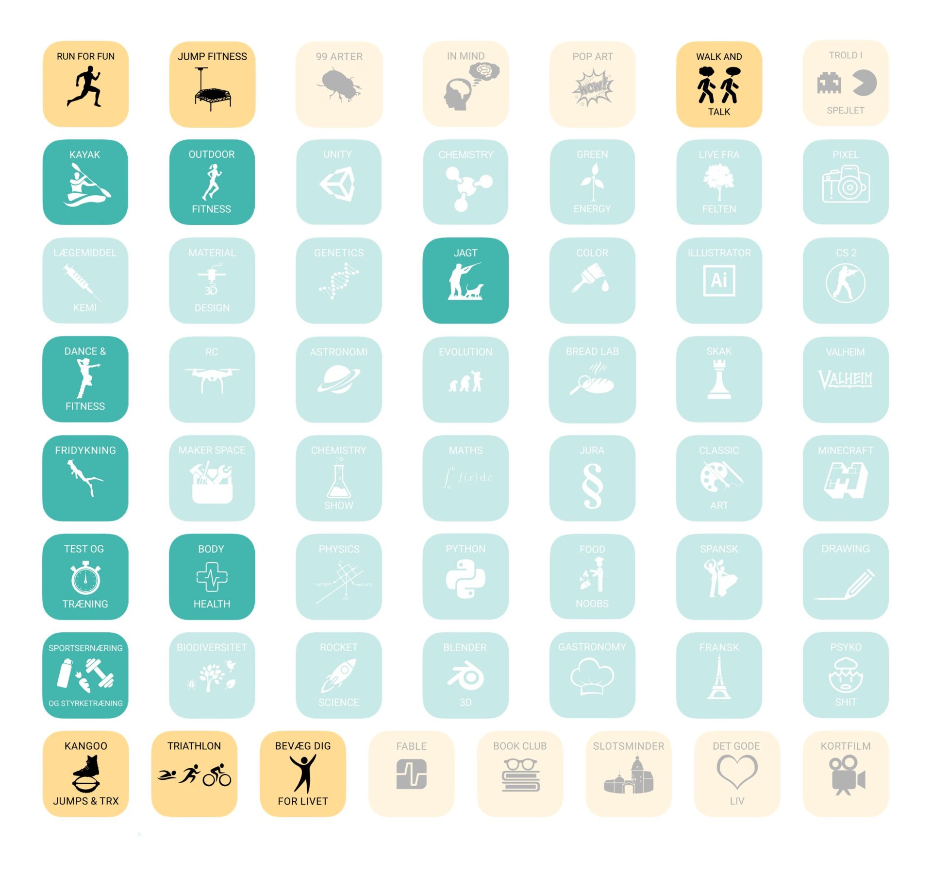 Hos os skifter du forløb efter fem gange. Du kan vælge frit mellem alle kategorier.
